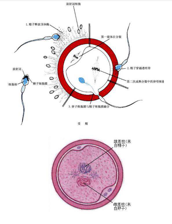 关于受精,首先卵子要成熟、精子要获能,精子通过顶体反应释放各种酶来穿透卵子周围的颗粒细胞层和透明带,然后精子与卵膜融合,当精子融入卵子后,卵子发生皮质反应、卵子被激活、恢复减数分裂,卵子激活后对精子(鱼精蛋白、DNA等)进行处理,最后形成雌雄双原核,完成受精。在这些过程中,任何一个环节有问题,都会导致受精失败或是异常受精。