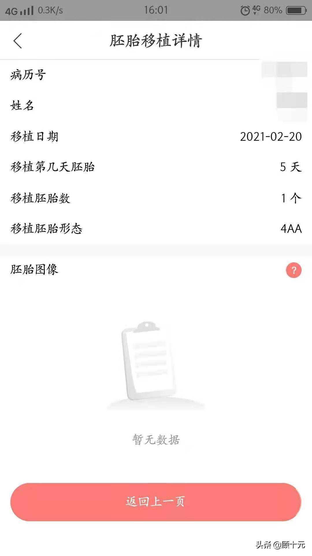 我移植了一个第五天胚胎,移植胚胎形态是4AA。之前医生就说过移植2个风险太大,而且医生说我胚胎质量好,移植一个成功率也是很高的。