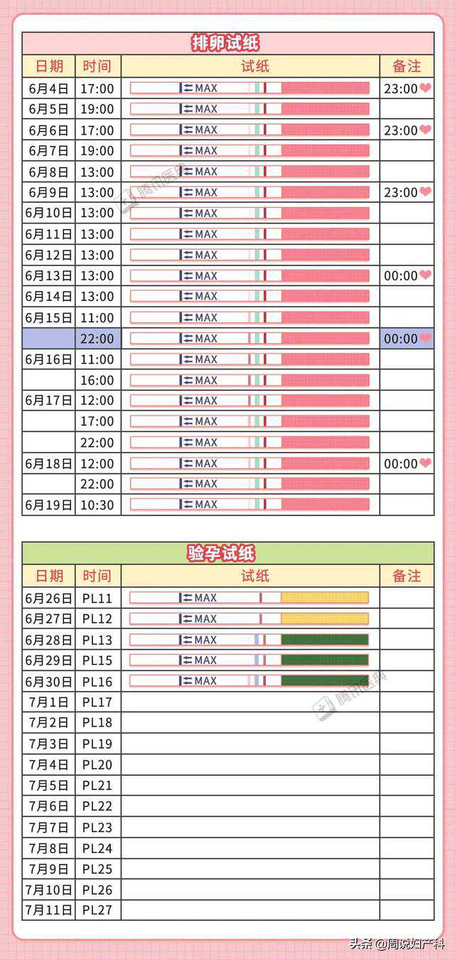 3.姨妈结束后第三天,开始验尿,用排卵试纸检测排卵情况,把试纸粘在本子上或者拍照对比。