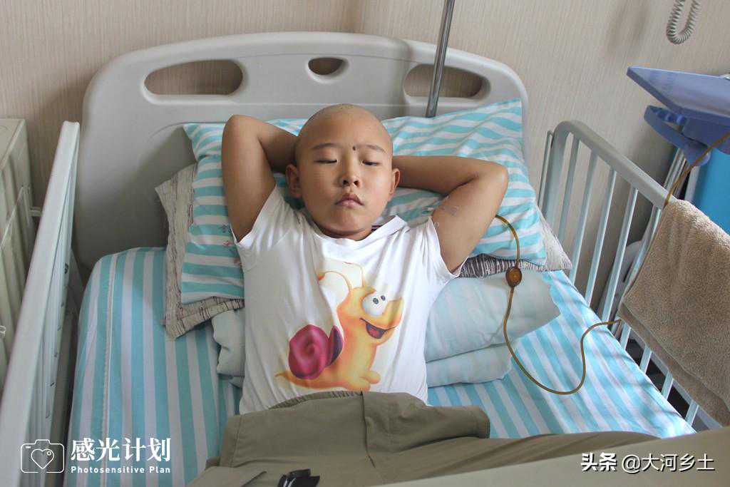 “我这个孩子来之不易,当年我老父亲病重,我想让父亲尽快抱上孙子,就和妻子商量着去做了试管婴儿,两年半后才有了这个宝贝儿子,虽然经历很多折磨,但一切都是值得的。可是万万没想到,今年才8岁的孩子,居然病了,而且是要命的病。”9月17日,在吉林大学第一附属医院,刘宝福难过地讲述着他的辛酸故事。图为刘宝福的儿子刘书岩化疗前躺在病床上。