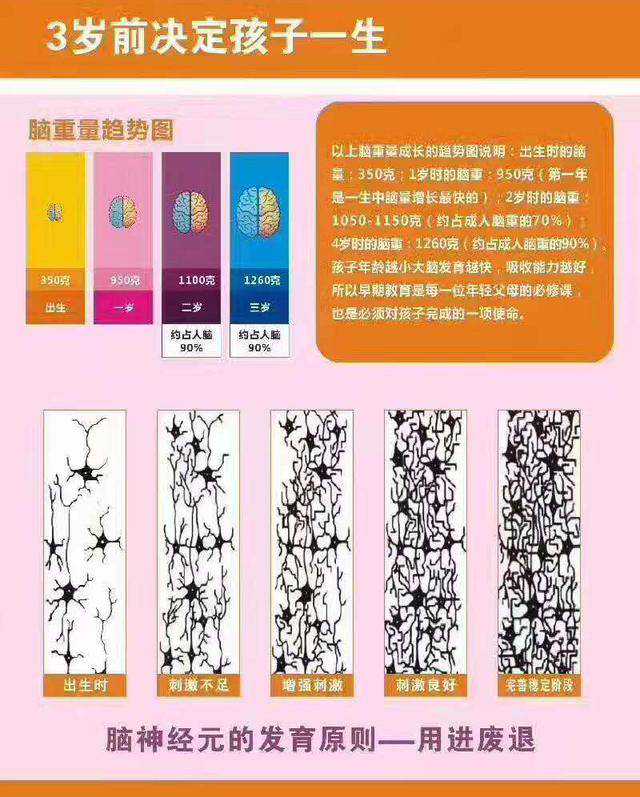 孩子出生之后,大脑依然在快速的增长,短短一年时间,孩子的大脑重量由350克增长到950克,可以说是孩子大脑重量发育最快的一个时间。