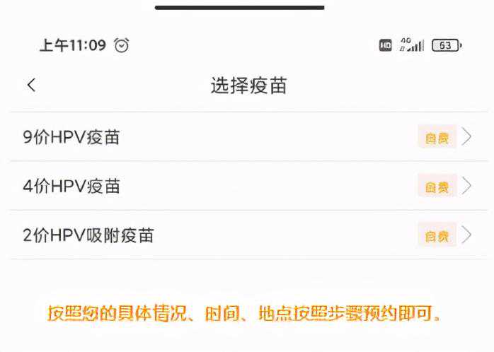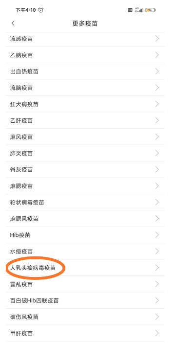 第五步,选择“人乳头瘤病毒疫苗”