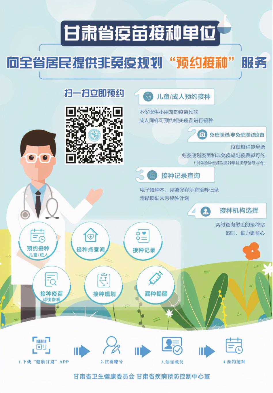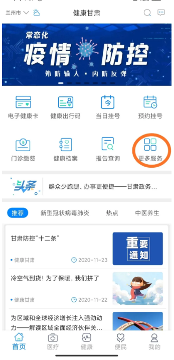 第一步,扫一扫二维码,下载“健康甘肃APP”,注册账号并登陆。